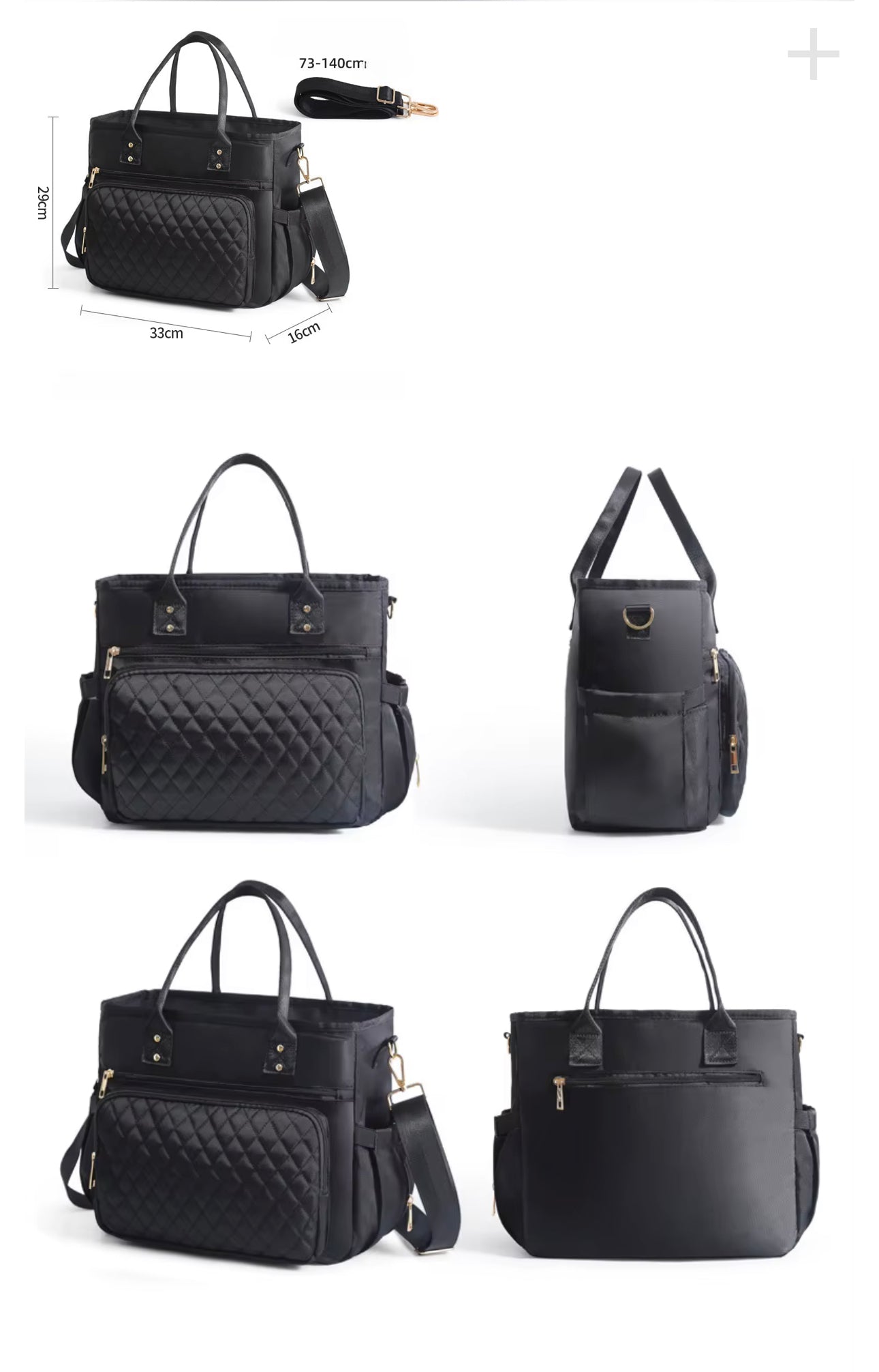 - Confort de transport : Poignées supérieures solides + bandoulière ajustable et amovible (73–140 cm) pour un port à la main ou à l’épaule.